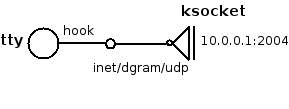 ngctl mkpeer tty1: ksocket hook inet/dgram/udp