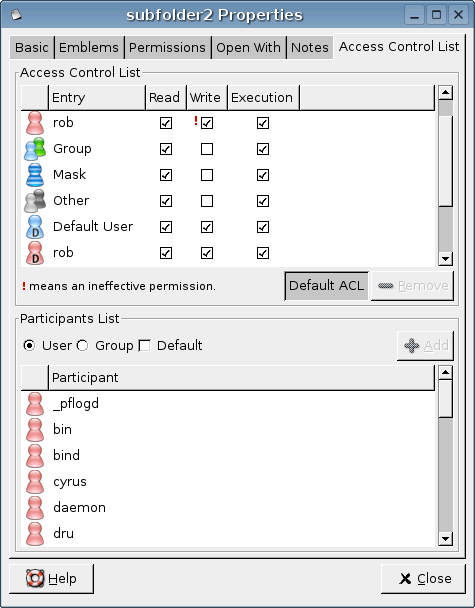 Хотя ACL не изменяют внутренние разрешения Unix ((r)ead, (w)rite и e(x)ecute),