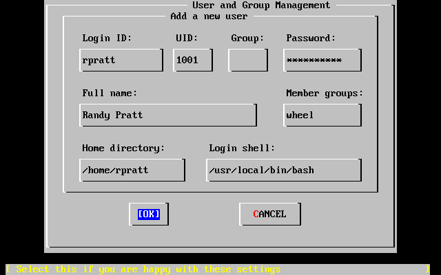 To allow anonymous FTP, use the arrow keys to select [ Yes ] and press Enter. The following screen (or similar) will display: