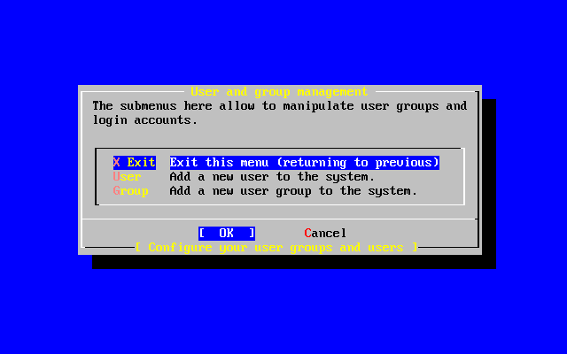Configuration of various options follows the successful installation. An option can be configured by re-entering the configuration options before booting the new FreeBSD system or after installation using /stand/sysinstall and selecting Configure.