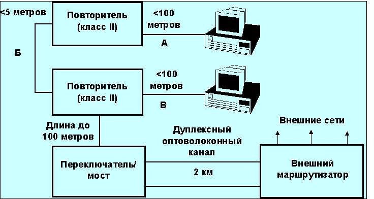 Рис. 4.1.1.2.2. Возможная схема 100-мегагерцной сети ethernet.