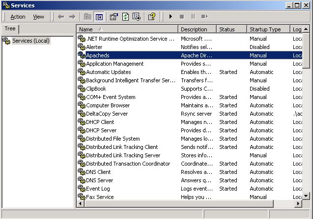 6. Итак, процесс инсталляции завершён. ApacheDS установлен в виде службы Windows NT, которая будет запущена автоматически после перезагрузки. Чтобы изменить это поведение или запустить эту службу прямо сейчас вручную, используйте Пуск->Панель управления->Администрирование->Службы (Start->Control Panel->Administrative Tools->Services), а затем найдите службу Apacheds: