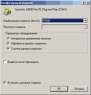 Вкладка «Сеть» отвечает за протокол, который должен быть, естественно «PPP», причем, настоятельно рекомендую включить опцию «Использовать расширения LCP». «Программное сжатие данных» на деле таковым не является, оно, как и подобная опция в настройках модема, весьма неожиданным образом меняет строку инициализации модема: