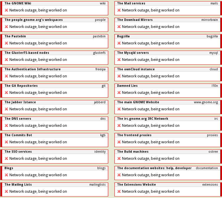 > Сервера Red Hat, Fedora и GNOME снова в строю.