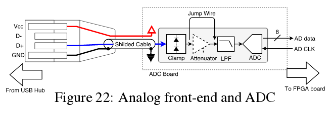 Как вы себе представляйте экранирование когда данные снимаются с цепи питания USB. Аппаратные методы защиты там рассмотрены, но признаны нецелесообразными из-за трудоёмкости и необходимости менять архитектуру USB. Также предлагается схема фильтра, который можно подключить между компьютером и устройством, но это не массовое решение.