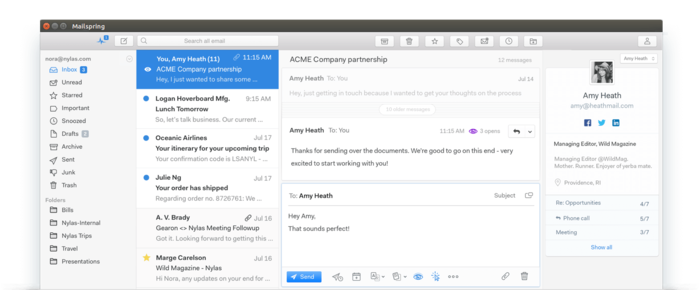 Это замечательный клиент с приятным для глаза дизайном, простой и быстрой возможностью расширения функционала, путем написания своего js-плагина. Смесь качественного кода с отличным UX/UI, чего так не хватает современным приложениям. Возможности этого приложения являются хорошим примером, как должен выглядеть современный почтовый клиент. Если для Вас это не важно, а на Electron у вас аллергия или вы боретесь за каждый килобайт оперативной памяти, то просто продолжайте использовать Thunderbird на свое здоровье.