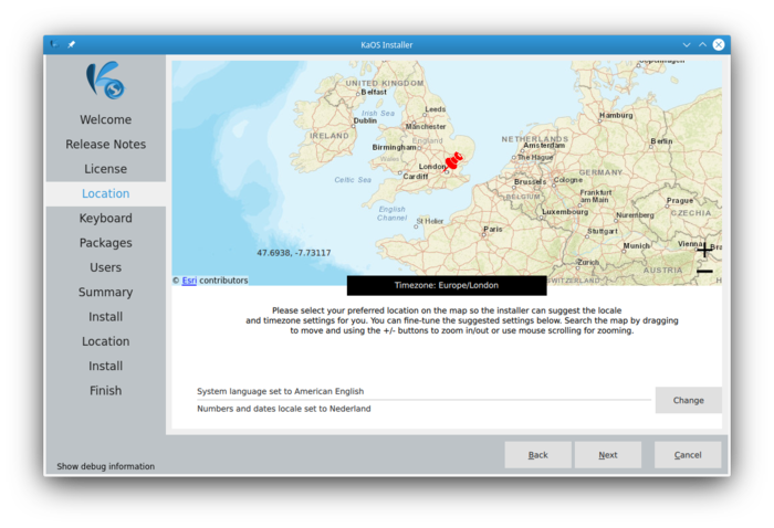 • Продолжена работа по переводу инсталлятора Calamares на модули, написанные с использованием QML. Переписан модуль для настройки локализации, в котором реализован выбор места по карте. Улучшен модуль для настройки параметров клавиатуры.