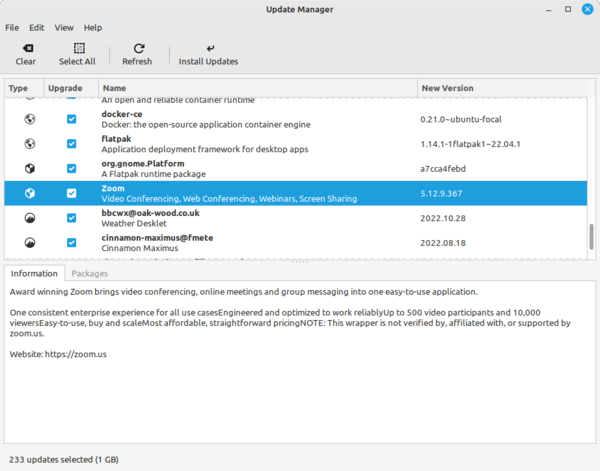 >В менеджер обновлений добавлена поддержка пакетов в формате Flatpak