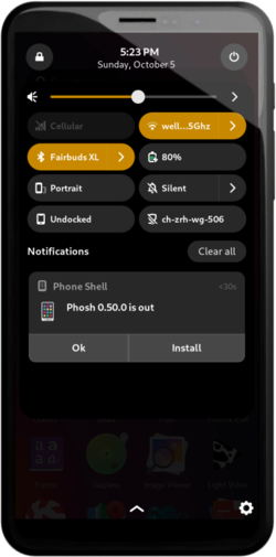 >Phosh использует композитный сервер Phoc, работающий поверх Wayland, а также собственную экранную клавиатуру.