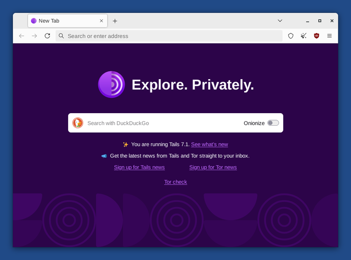 • В качестве домашней страницы в браузере Tor Browser вместо внешней страницы, загружаемой с сайта Tails, задействована локальная страница, напоминающая штатную домашнюю страницу Tor Browser.