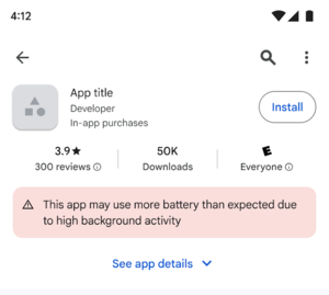 Предупреждение будет добавляться на страницу загрузки в случае превышения определённого порогового значения пробуждений в неактивном состоянии смартфона, реализуемых в приложении при помощи механизма Wake Lock в API PowerManager. Wake Lock позволяет приложениям приостановить переход устройства в спящий режим и продолжить фоновое выполнение при выключенном экране.