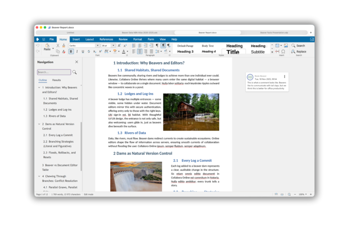 > пакет Collabora Online имеет клиент-серверную архитектуру, при которой на сервере выполняется LibreOffice Core, отвечающий за компоновку и отрисовку документов, электронных таблиц и презентаций, а за интерфейс отвечает web-приложение.