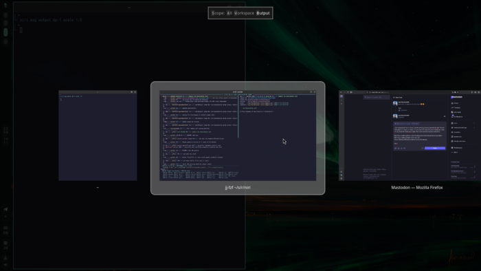 После трёх месяцев разработки опубликован выпуск композитного сервера Niri 25.11, реализующего метод мозаичной (tiling) компоновки в стиле GNOME-расширения PaperWM, в котором окна группируются в бесконечно прокручиваемую на экране ленту. Открытие нового окна приводит к расширению ленты, а ранее добавленные окна не меняют свой размер. Проект базируется на использовании протокола Wayland, но позволяет запускать приложения X11 при помощи DDX-сервера Xwayland. Код проекта написан на языке Rust и распространяется под лицензией GPLv3. Пакеты формируются для Fedora, NixOS , Arch Linux и FreeBSD.