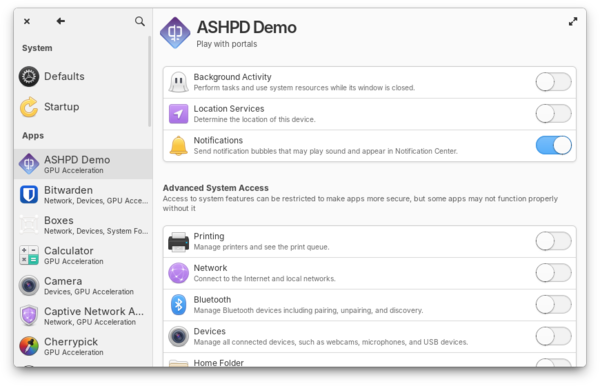 • В конфигураторе изменены некоторые настройки по умолчанию, например, включена автоматическая установка обновлений, отключены связанные с Wi-Fi назойливые уведомления, с панели убраны ярлыки вызова конфигуратора (System Settings) и интерфейса переключения между виртуальными рабочими столами (Multitasking View). Добавлена возможность назначения вызываемого по умолчанию просмотрщика PDF. Секция настройки графических планшетов Wacom переименована в "Pen & Drawing", так как она может применяться и для световых перьев. Изменена пиктограмма опции для разрешения фонового выполнения приложений.