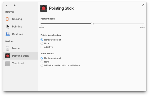 В секцию настройки мыши и тачпада добавлены опции для трекпоинта и режима перетаскивания при помощи тачпада.