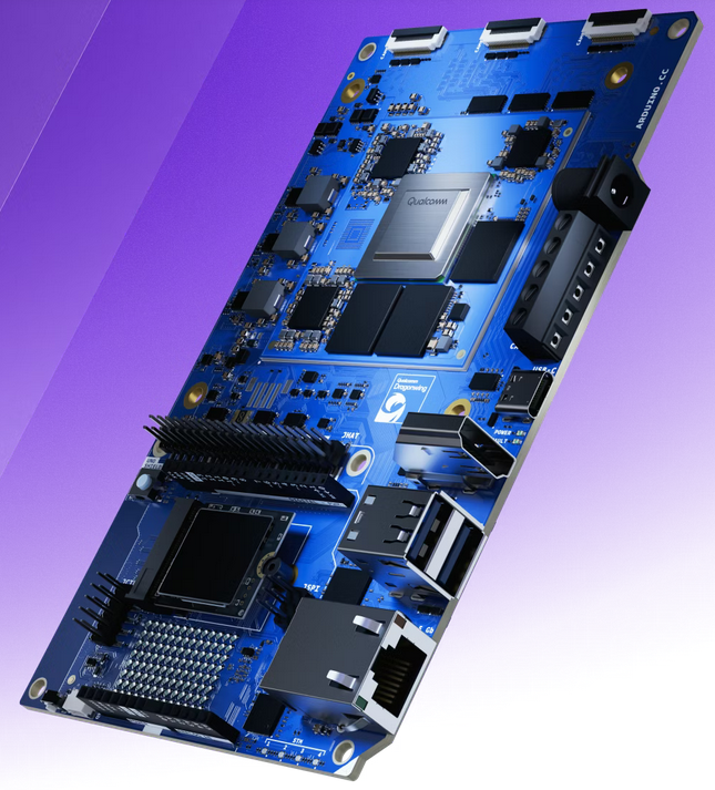Проект Arduino, который в прошлом году поглотила компания Qualcomm, анонсировал одноплатный компьютер VENTUNO Q, совмещающий в одном устройстве микроконтроллер STM32H5F5 и микропроцессор Qualcomm Dragonwing IQ8 со встроенными GPU и AI-ускорителем. Основным назначением платы является создание автономных AI-устройств, способных решать задачи компьютерного зрения и обособленно выполнять модели машинного обучения.