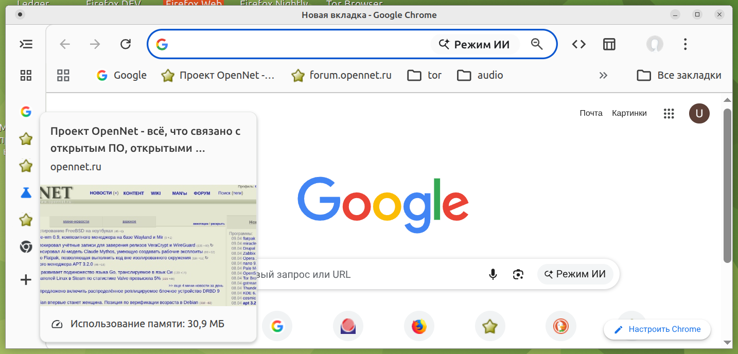 - Внесены улучшения в инструменты для web-разработчиков. Во встроенном AI-ассистенте реализован автоматический выбор контекста. Модернизирована панель "Device Mode", применяемая для тестирования работы сайта на разных мобильных устройствах. В панели Network обеспечено автоматическое декодирование сжатого содержимого запросов, переданных с заголовком Content-Encoding: gzip или deflate. Предоставлена возможность применения регулярных выражений для фильтрации CSS-стилей.